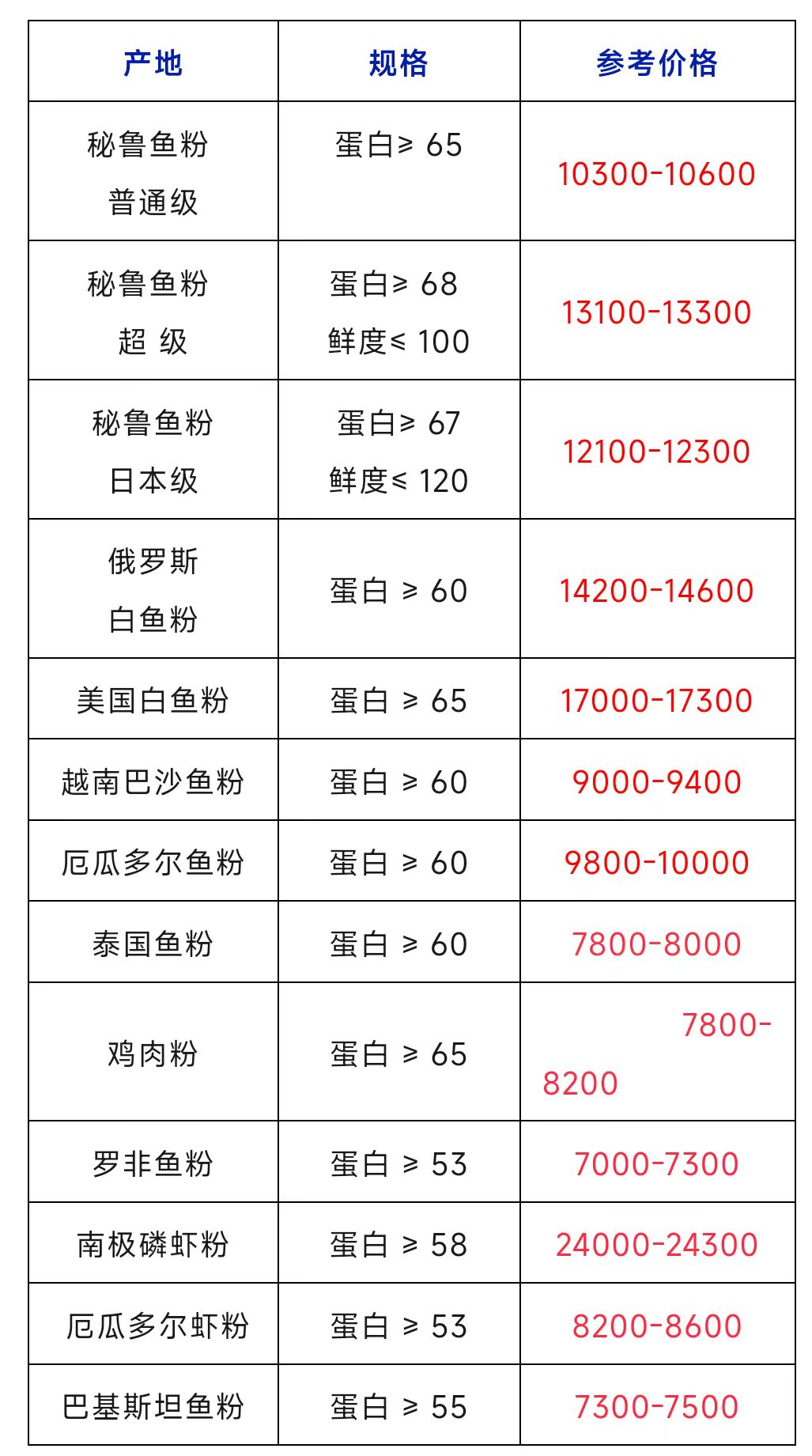 今日最新进口鱼粉报价详情,观点和价格数据仅供参考,不作为投资依据,实际交易价格以市场人员报价为准。